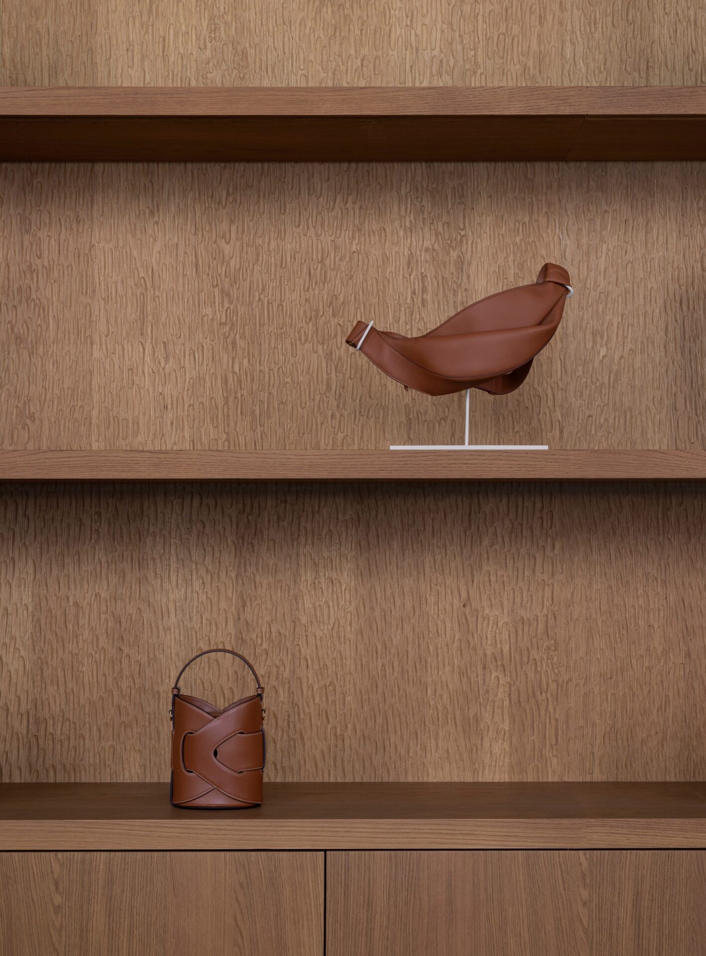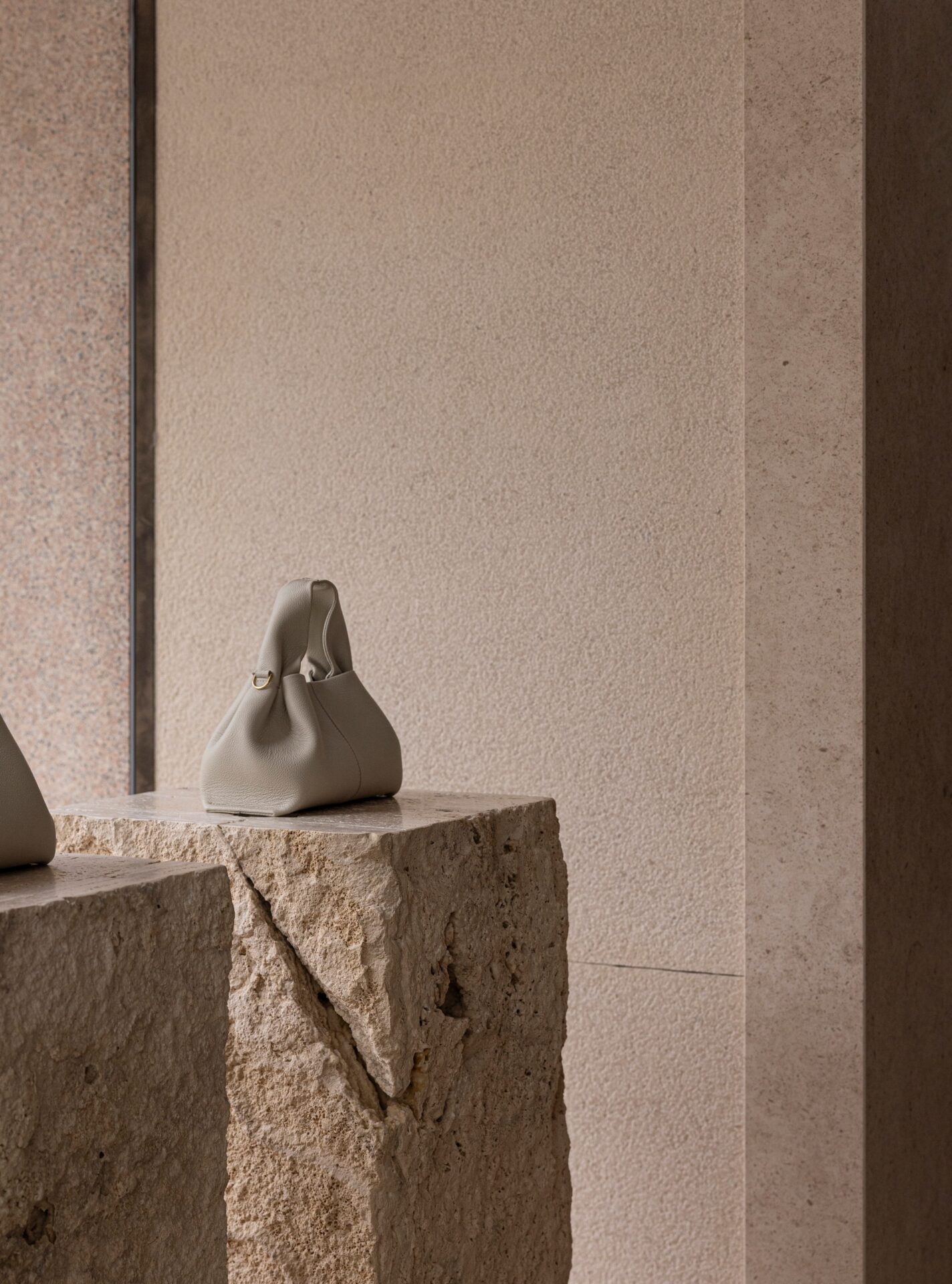 This materials-led approach draws on Polène’s commitment to craft and its palette of natural leather tones. The soft, sculptural quality of the brand’s bags, jewellery and homewares and the organic character of its design language are also echoed in the interior, creating a close connection between the products on display and the surrounding architecture.