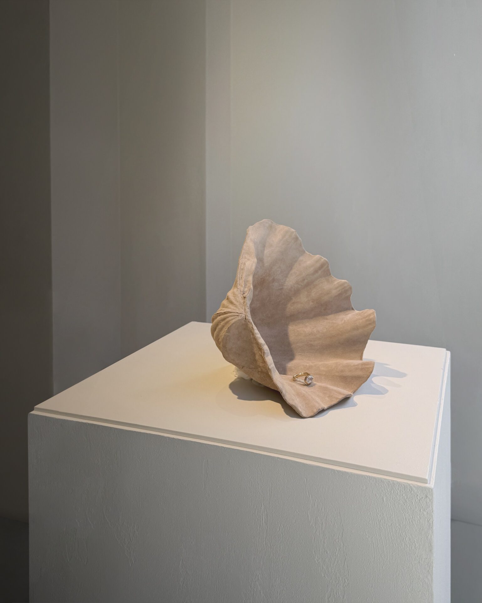 Working with the challenge of a long, narrow space, I first focused on creating an inviting and dynamic perspective, using a rhythm of niches facets, and lighting along the walls. This sense of acceleration enhances the surprise at the back of the boutique, where a small, intimate, enclosed room awaits, where one can feel like a jewel themselves: a little haven for pausing and spending time with a client. When imagining the private room, I simply thought of that moment when an engaged couple comes in to choose a ring. I wanted to put that moment on stage in a very frank way.